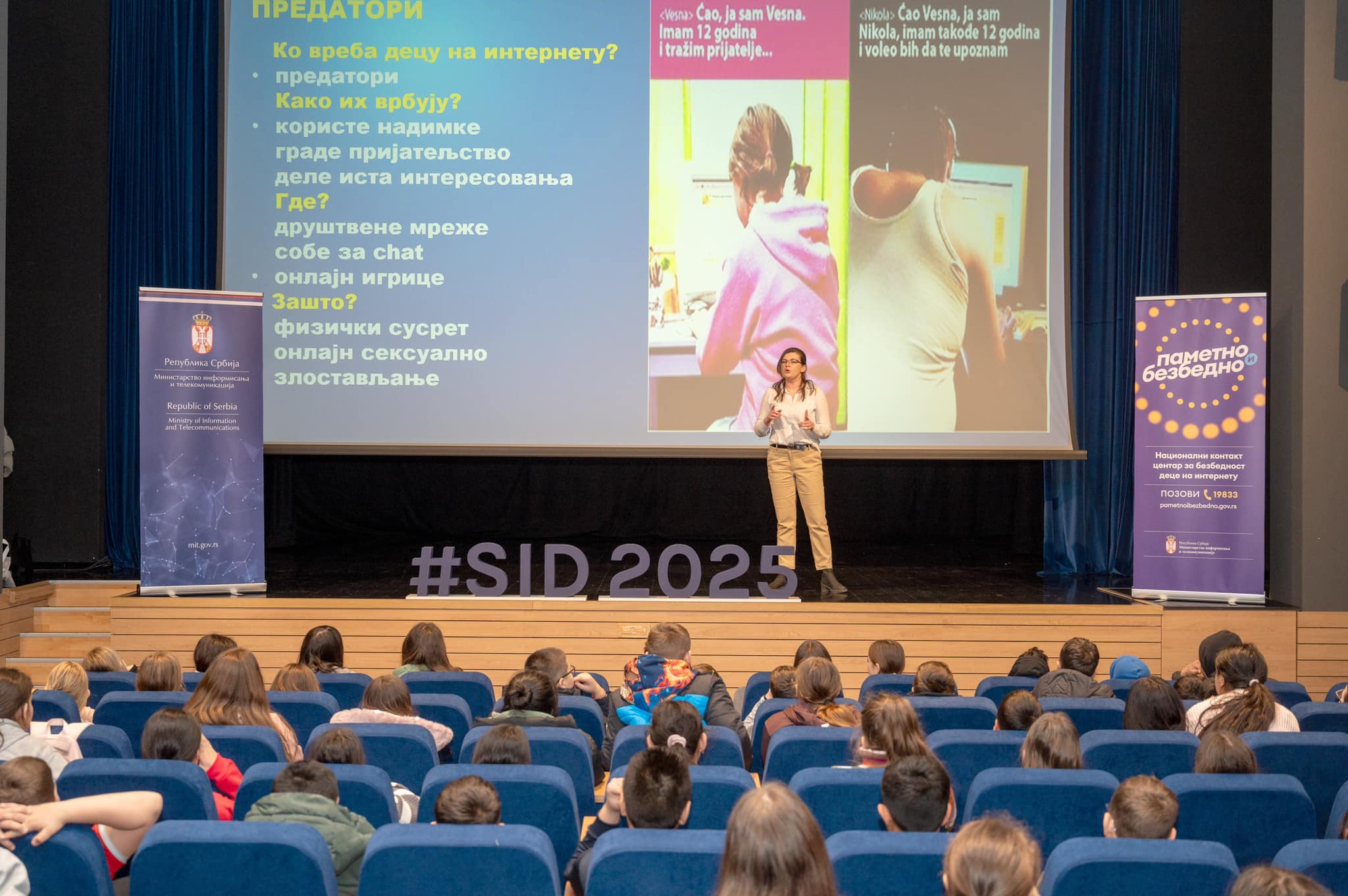 Стручњаци Националног контакт центра Министарства информисања и телекомуникација за безбедност деце на интернету одржали су данас образовни програм на тему „Безбедност деце на интернету“ у позоришној сали Општине Сурчин. Програм је био намењен ученицима Основне школе „22. октобар“ и осмишљен са циљем да им пружи информације о сигурном коришћењу дигиталних технологија.