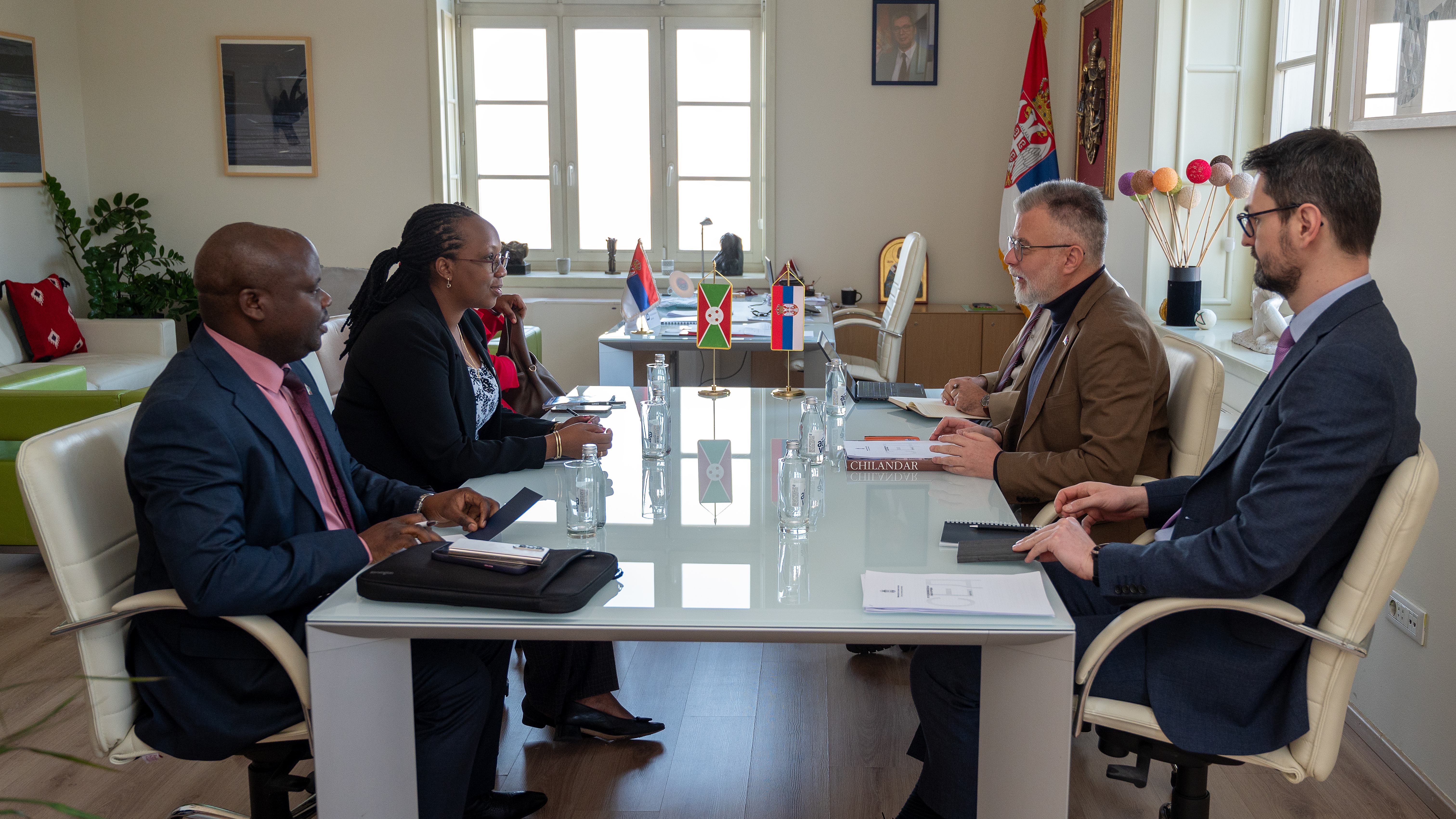 Министар информисања и телекомуникација г. Дејан Ристић састао се данас у Београду са Њеном екселенцијом гђом Маријом Шантал Ниџимбере, министарком трговине, транспорта, индустрије и туризма Републике Бурунди, и њеним сарадницима.