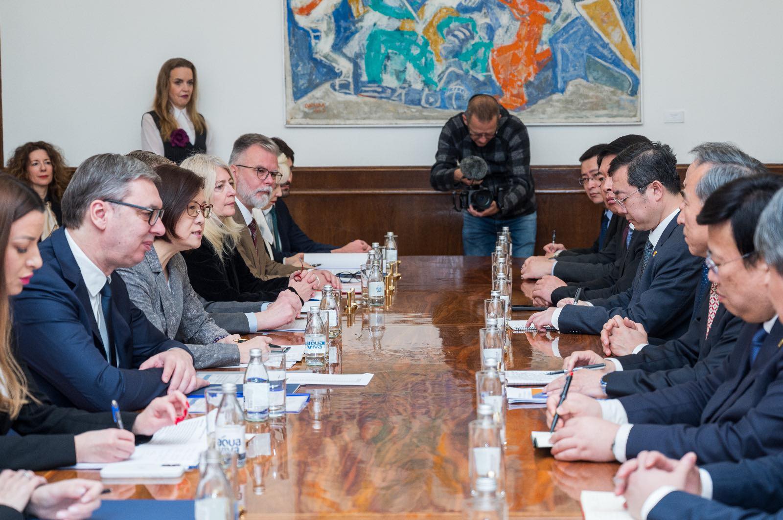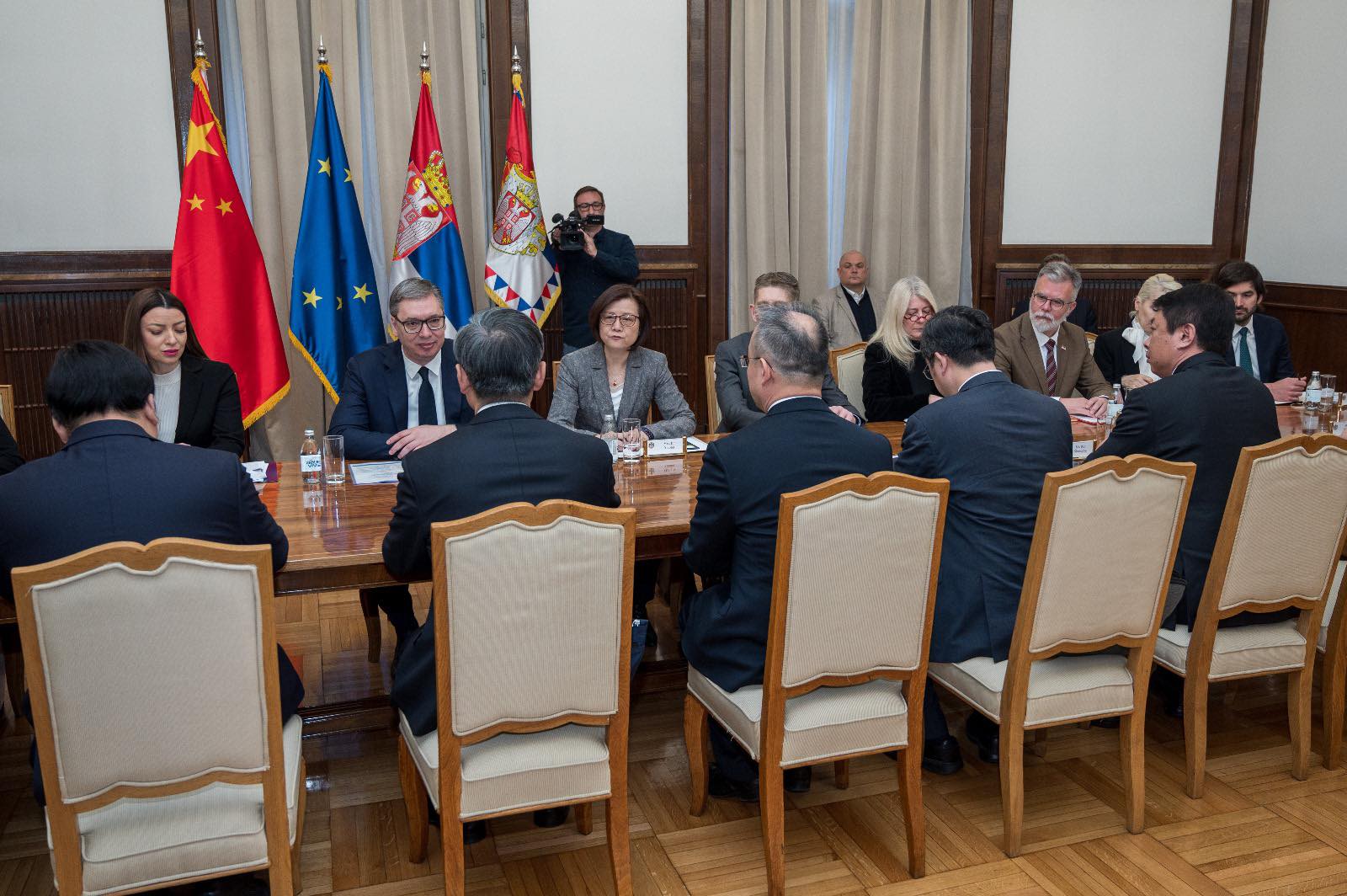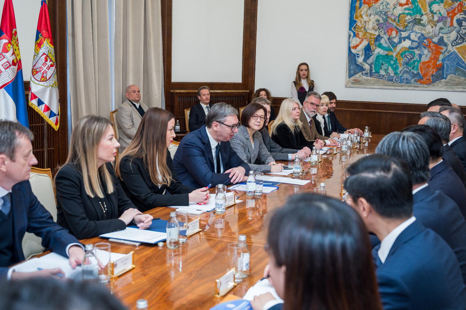 ,,Захваљујући нашем изузетном економском односу, Кина је постала један од најважнијих трговинских и инвестиционих партнера Србије, што је резултат посвећености обе стране и заједничког рада на унапређењу економске и свеукупне сарадње. Један од наших приоритета је брза и ефикасна примена Споразума о слободној трговини, који ће додатно да олакша пласман српских производа на кинеско тржиште. У исто време, све више кинеских компанија препознаје Србију као идеално место за инвестирање и покретање производње, користећи предности нашег повољног пословног амбијента“, додао је председник.
