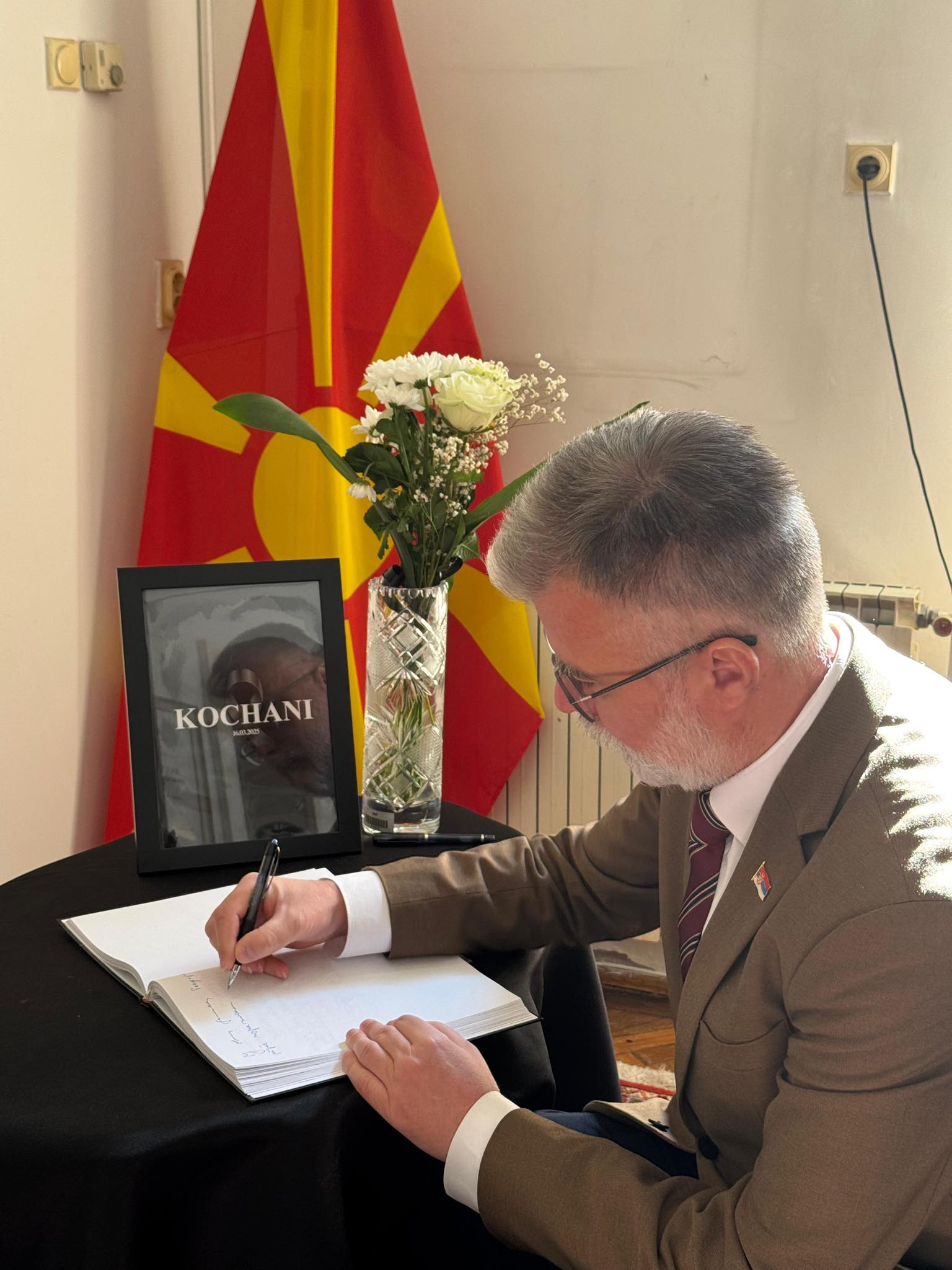 Министар информисања и телекомуникација г. Дејан Ристић уписао се данас у књигу жалости, која је, поводом трагедије у Кочанима, отворена у Амбасади Републике Северне Македоније у Републици Србији.